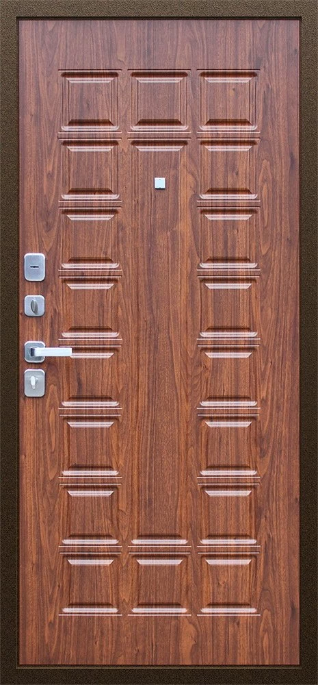 Надежная входная Дверь Спартак Орех темный премиум класса по цене 34 331 руб. Большая толщина стали защитит от проникновения в ваш дом, квартиру или коттедж. Используется очень качественная фурнитура: замки, цилиндры, ручки, защелки. Покрытие и отделка двери изготовлено под внимательным контролем производителя. Дверь имеет долгий срок службы и гарантию.