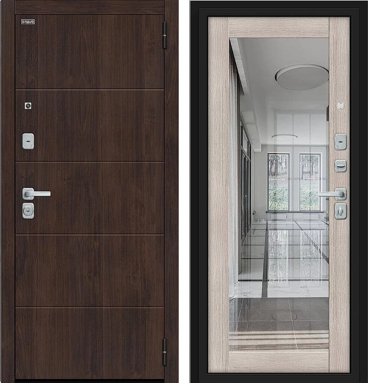 Надежная входная Дверь Браво Флэт/BChrome Almon/Cappuccino Melinga премиум класса по цене 42 831 руб. Большая толщина стали защитит от проникновения в ваш дом, квартиру или коттедж. Используется очень качественная фурнитура: замки, цилиндры, ручки, защелки. Покрытие и отделка двери изготовлено под внимательным контролем производителя. Дверь имеет долгий срок службы и гарантию.