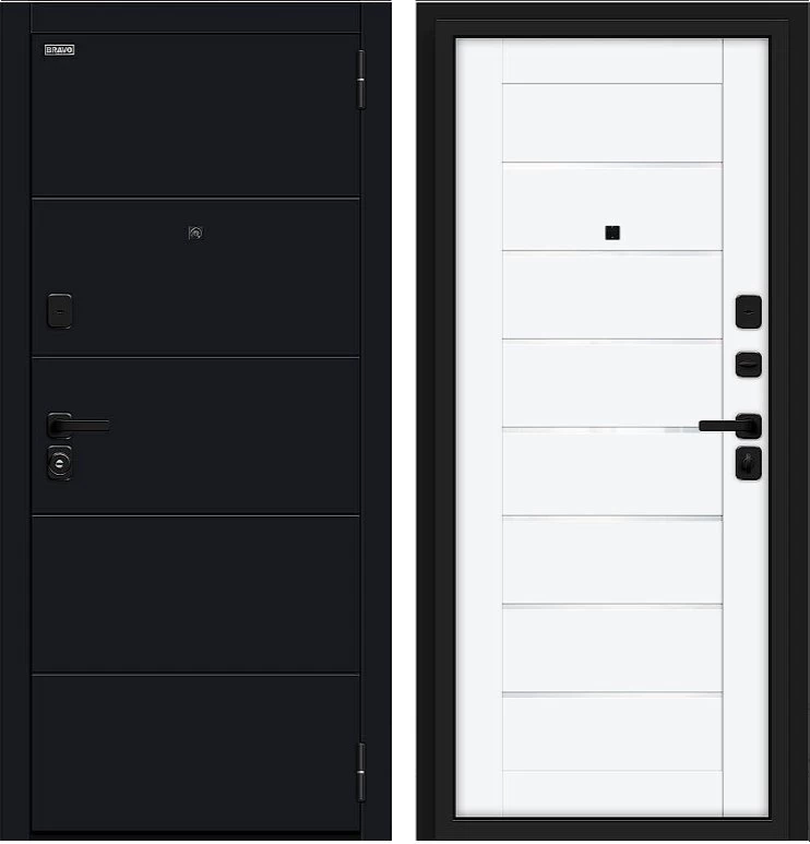 Надежная входная Дверь Браво Прайм/SBlack-Black Shell/White Silk премиум класса по цене 40 431 руб. Большая толщина стали защитит от проникновения в ваш дом, квартиру или коттедж. Используется очень качественная фурнитура: замки, цилиндры, ручки, защелки. Покрытие и отделка двери изготовлено под внимательным контролем производителя. Дверь имеет долгий срок службы и гарантию.